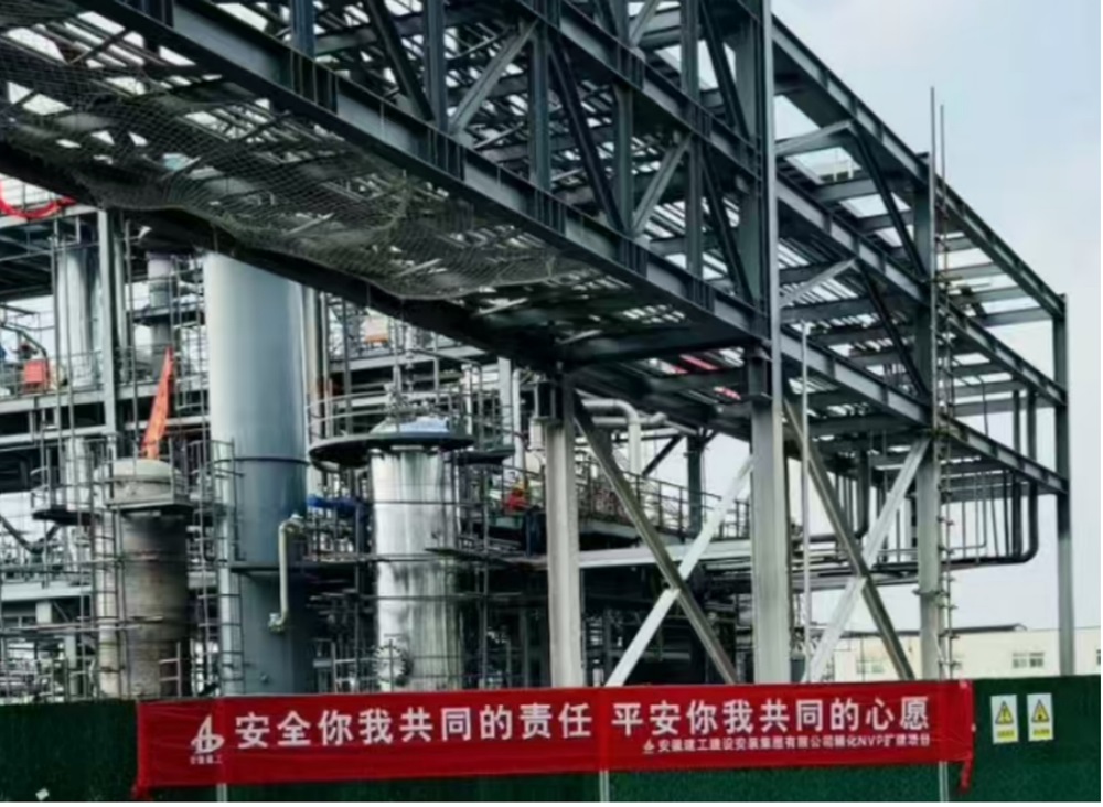 NVP裝置是敞開(kāi)式鋼框架NVP裝置,為4層工業(yè)構筑物,占地面積1845.25平方米,建筑高度17米,已于2024年10月5日完成竣工驗收工作。