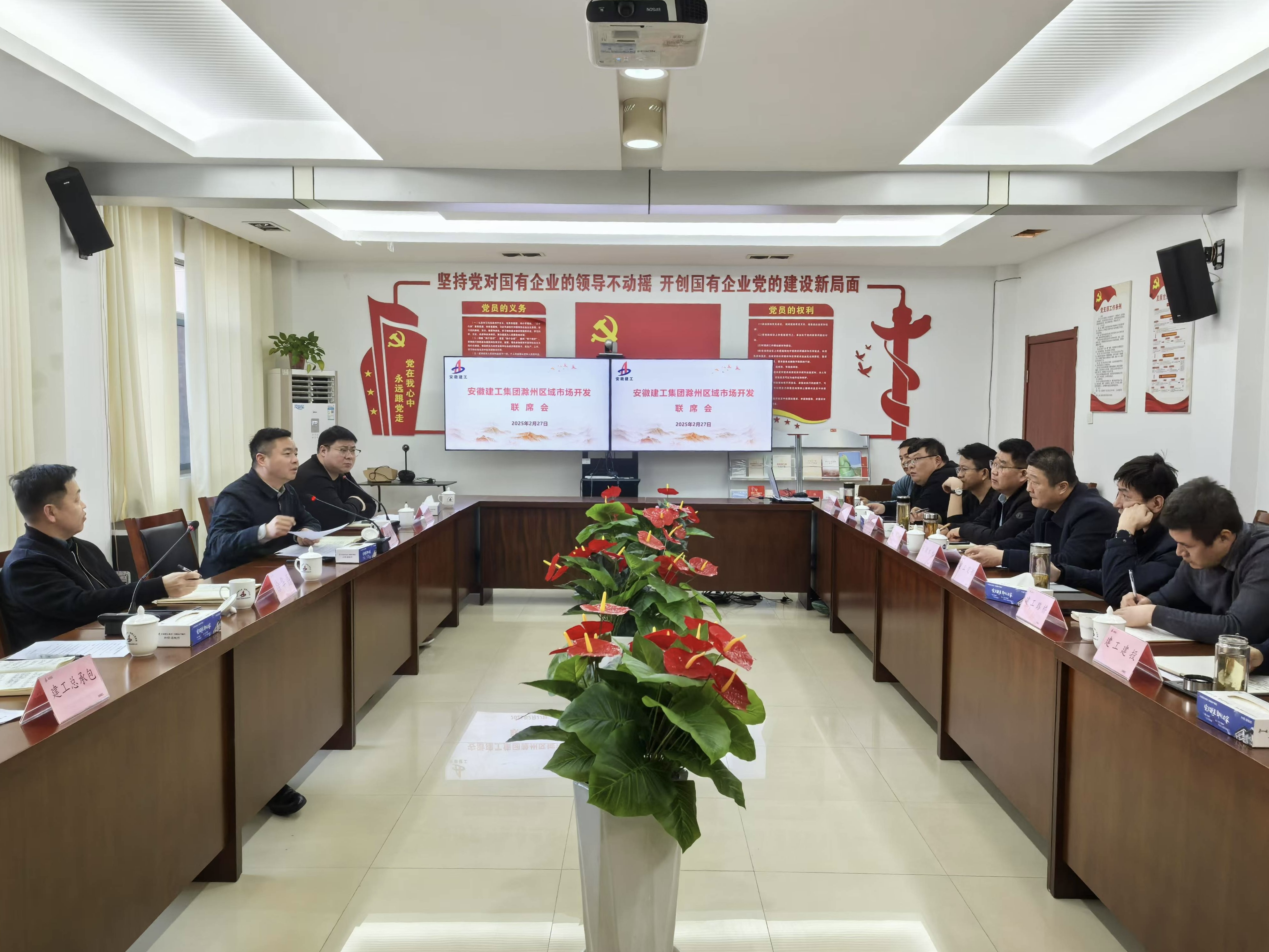 2月27日下午,安徽建工集團滁州片區2025年第一次市場(chǎng)開(kāi)發(fā)工作機制協(xié)調會(huì )在建工總承包皖東建投4樓會(huì )議室召開(kāi)。建工安裝黨委委員、副總經(jīng)理劉曉剛,黨委委員、副總經(jīng)理徐華磊,集團在滁各單位主要負責人及市場(chǎng)開(kāi)發(fā)相關(guān)人員參加會(huì )議,會(huì )議由建工安裝市場(chǎng)開(kāi)發(fā)和投資部經(jīng)理許杰主持。