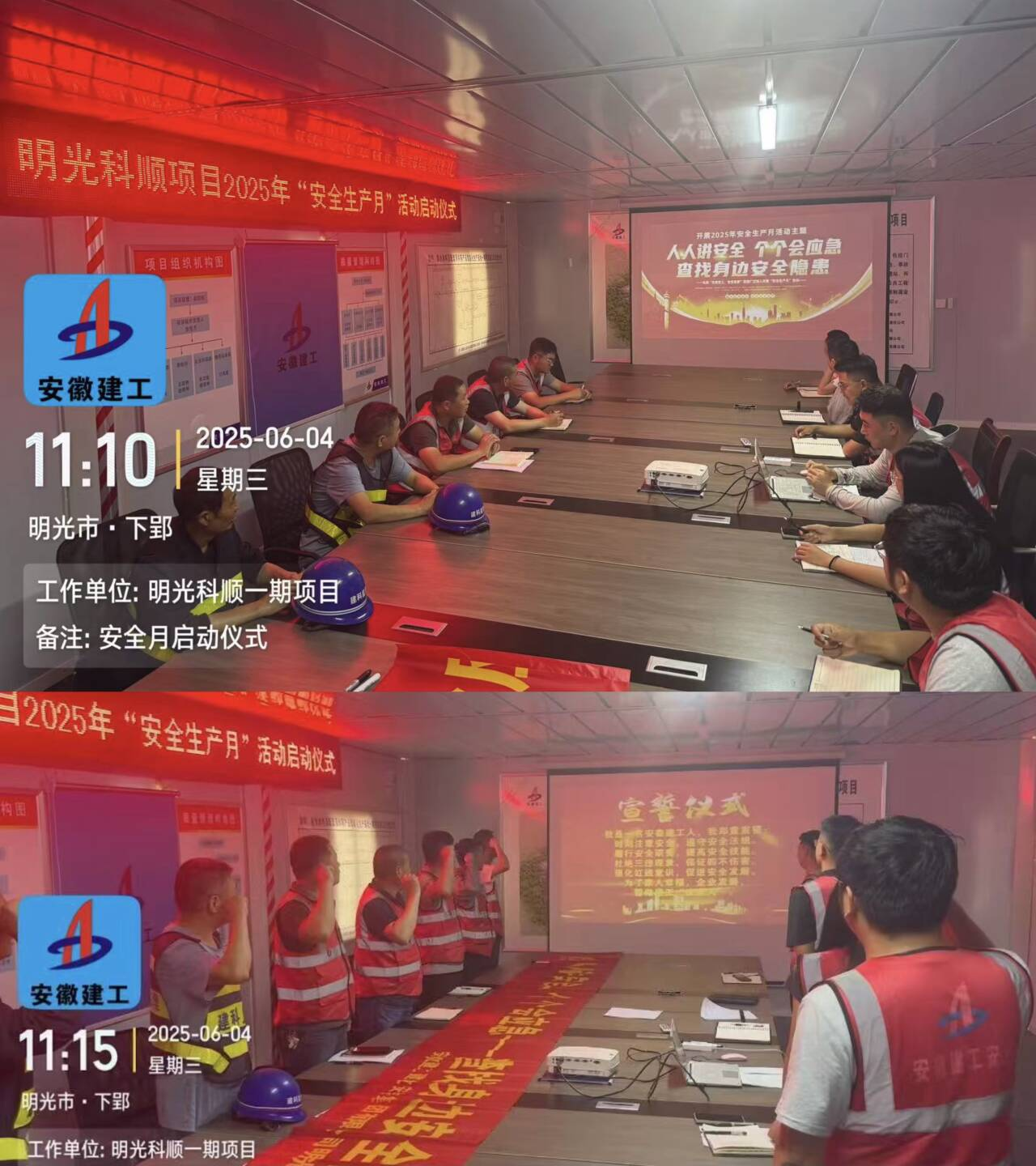 6月4日下午,建工安裝滁州分公司舉行2025年"安全生產(chǎn)月"活動(dòng)啟動(dòng)儀式,本次活動(dòng)以"人人講安全、個(gè)個(gè)會(huì )應急——查找身邊安全隱患"為主題。啟動(dòng)儀式順利開(kāi)展標志著(zhù)為期一個(gè)月的安全生產(chǎn)系列活動(dòng)正式拉開(kāi)帷幕。啟動(dòng)儀式由副經(jīng)理張漢軍主持,滁州分公司領(lǐng)導班子及全體職工共同參與。